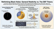 This infographic, titled “Rethinking Black Holes: General Relativity vs. The DEF Theory,” presents a comparative overview of two competing theoretical frameworks describing black holes: the established General Relativity (GR) and the newly proposed Differential Expansion Framework (DEF). The central theme… Read more ›